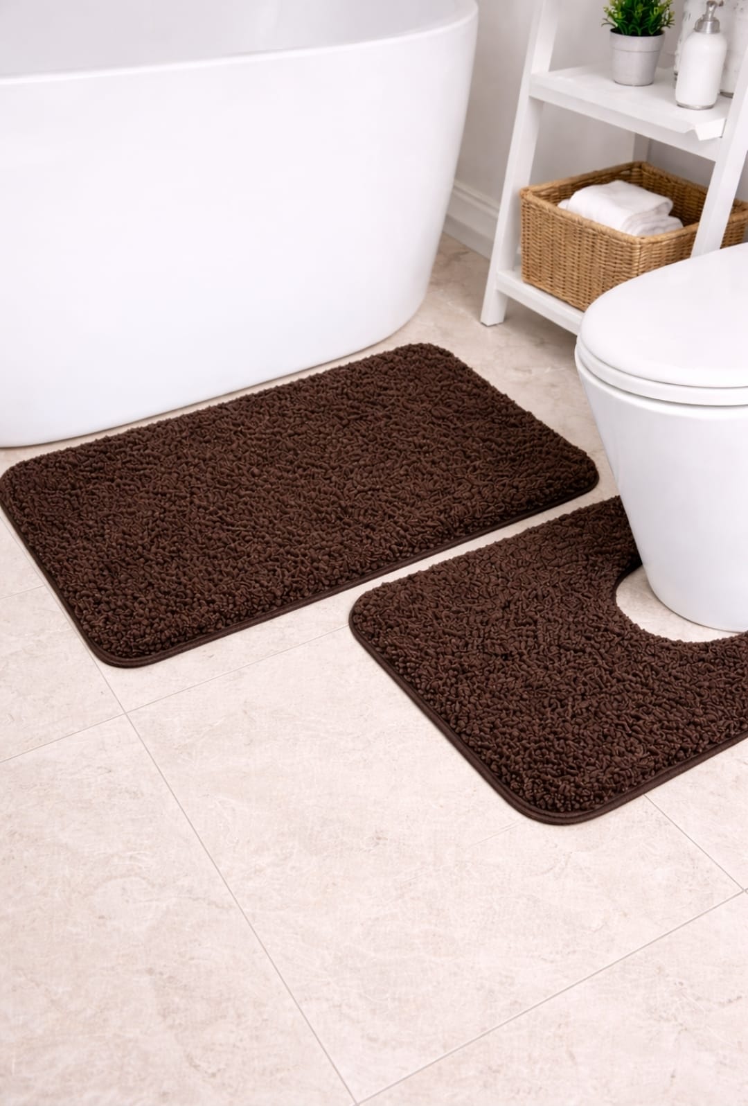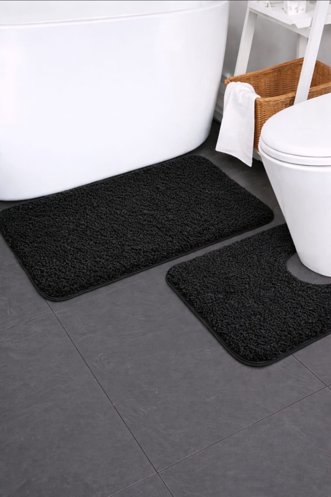 Perfect as bathroom comfort mats and stylish home décor accessories, this set is available in Black, White, Beige, Brown, Dark Grey, and Blue Green/Aqua to match any interior.
