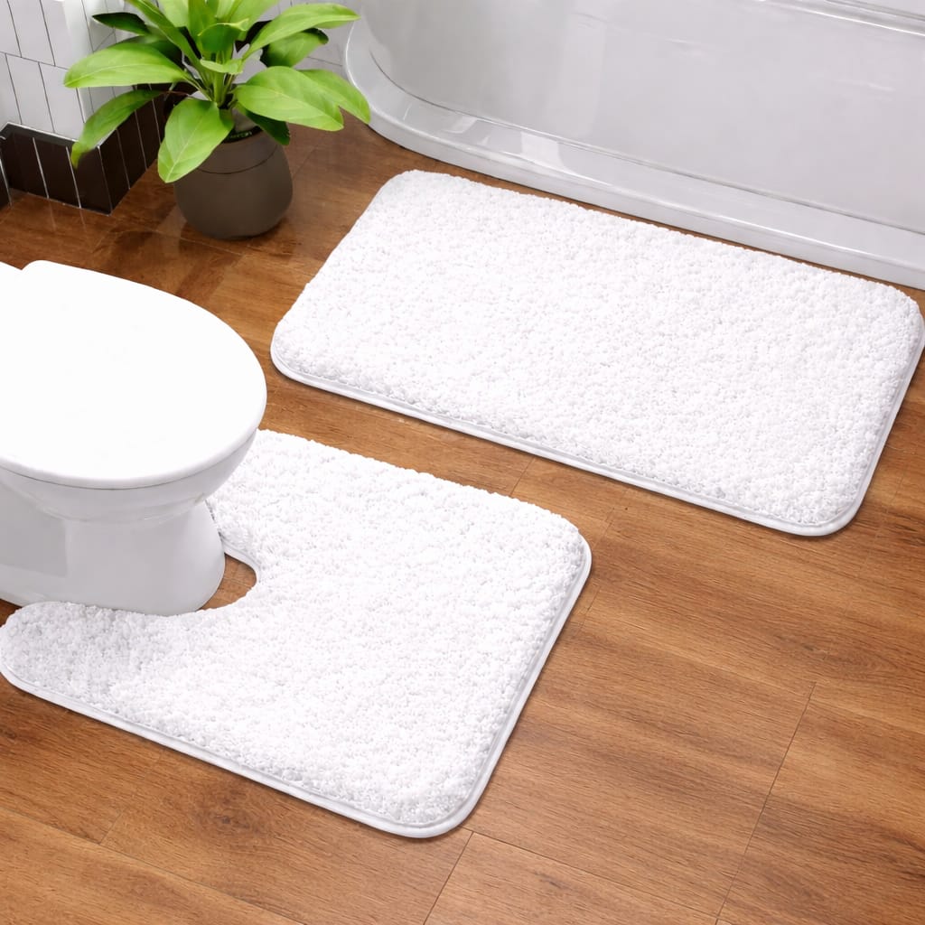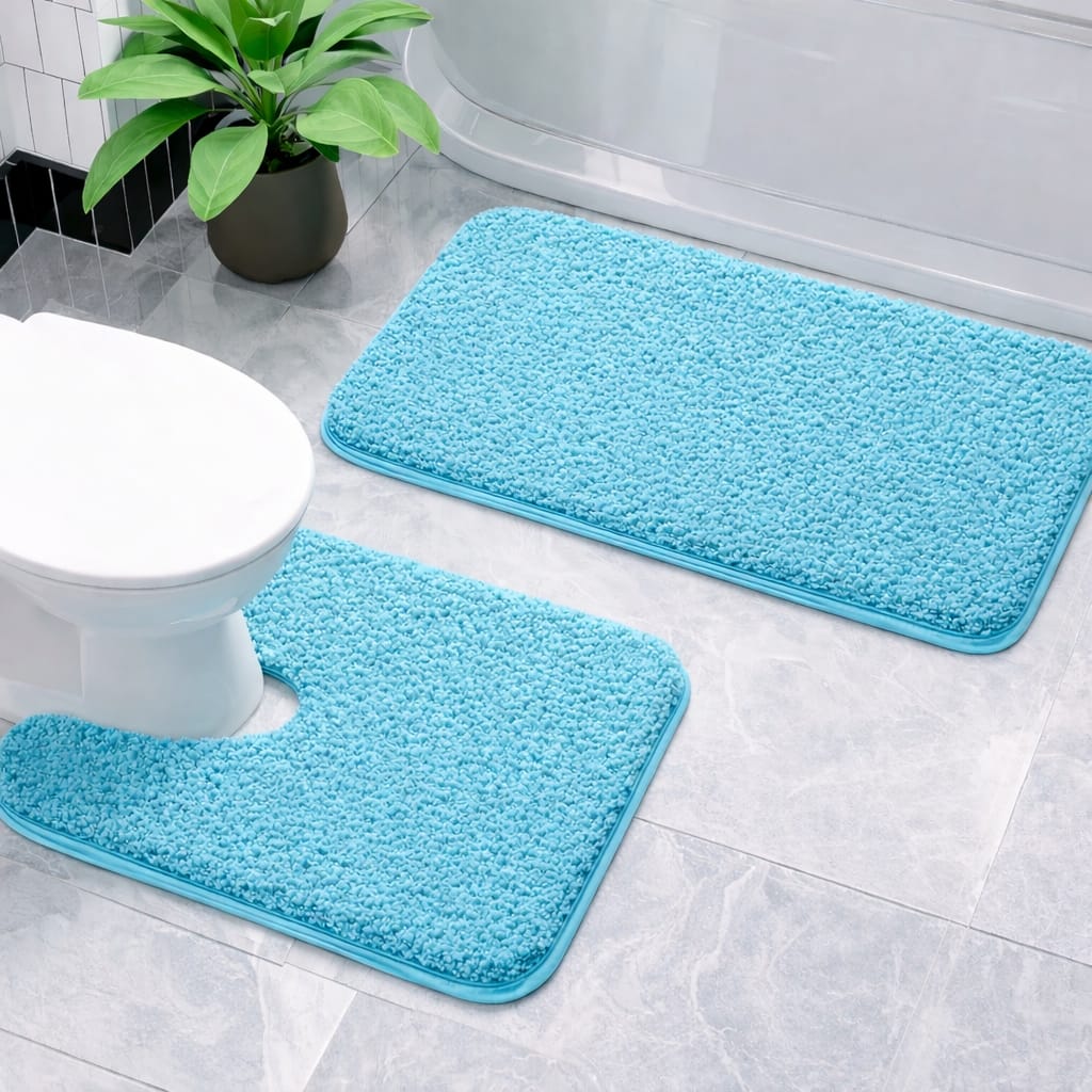 Upgrade your bathroom with the luxurious 2pcs Ultra-Soft Plush Bath Mat Set, designed to deliver comfort, safety, and elegant style. Made from premium polyester coral fleece with a thick 2100gsm density, these mats feel incredibly soft under your feet while providing long-lasting durability.