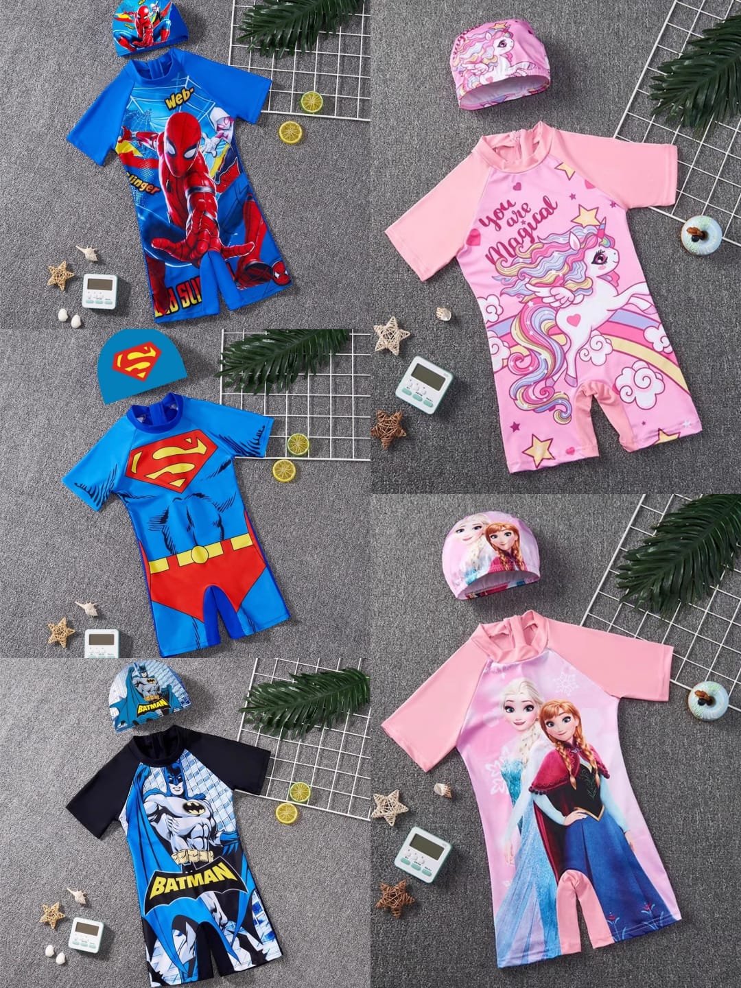 KIDS CARTOON THEMED SWIMMING COSTUMES WITH CAP