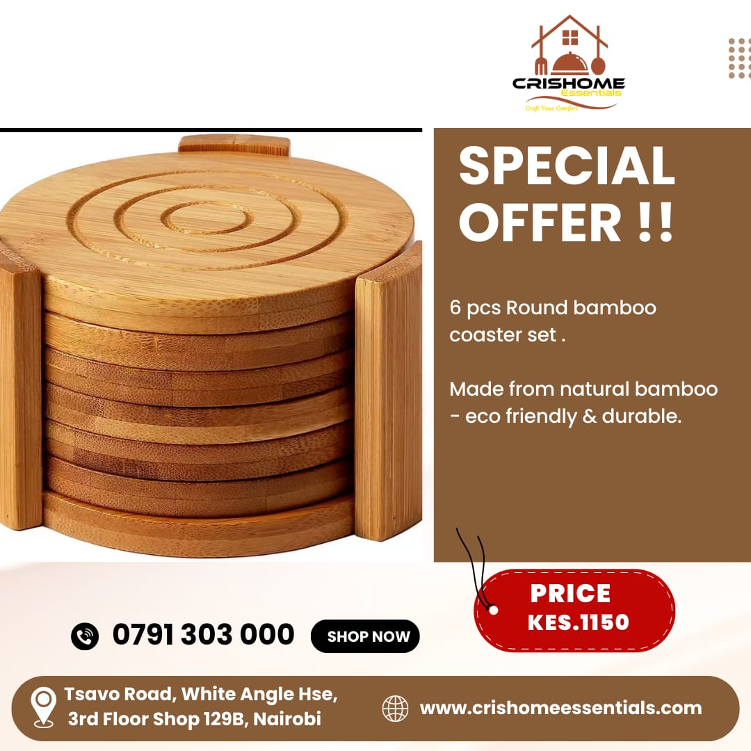 Shop 6PCS Round Bamboo Coaster Set at CrisHome Essentials. Eco-friendly natural bamboo coasters for cups, mugs and glasses. Protects surfaces from heat, stains and scratches. Durable, stylish and perfect for home or office use.