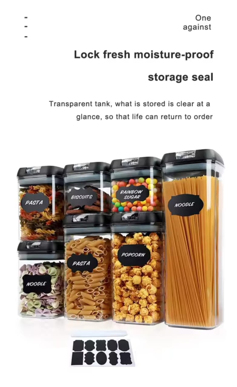 Elevate your pantry with this Acrylic 7-pcs Food Storage Container Set—a sleek, versatile solution designed to keep grains, snacks, pasta, and more fresh and clearly visible.