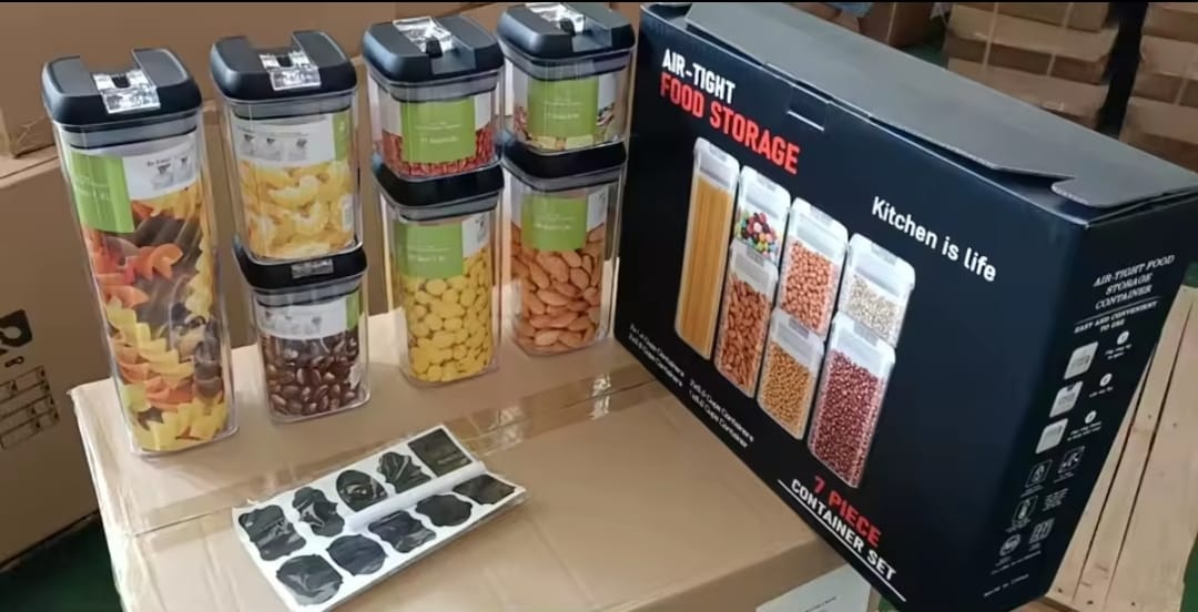 Organize stylishly with our Acrylic 7-pcs Food Storage Container Set (500 ml x2, 800 ml x2, 1200 ml x2, 1900 ml x1). Airtight, transparent acrylic for everyday pantry essentials—perfect for Nairobi homes. Shop now at Chrishome Essentials!