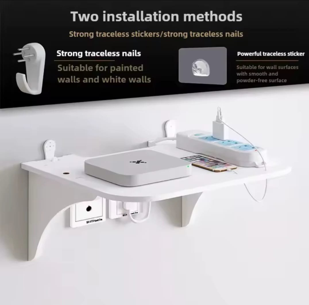 This versatile wall-mounted shelf is specially designed for storing essential devices such as WiFi routers, set-top boxes, small decor items, and office accessories, helping you keep your living or working space neat and well-organized. Instead of leaving devices scattered on tables or floors, this floating shelf provides a dedicated and secure storage space.
