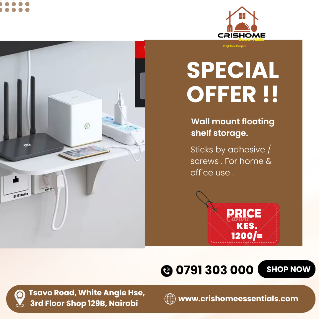 The Wall mount floating shelf storage for home, office is a powerful, modern, and space-saving organization solution designed to bring order and style to homes and offices in Kenya, especially in Nairobi where clean, clutter-free spaces are highly valued.