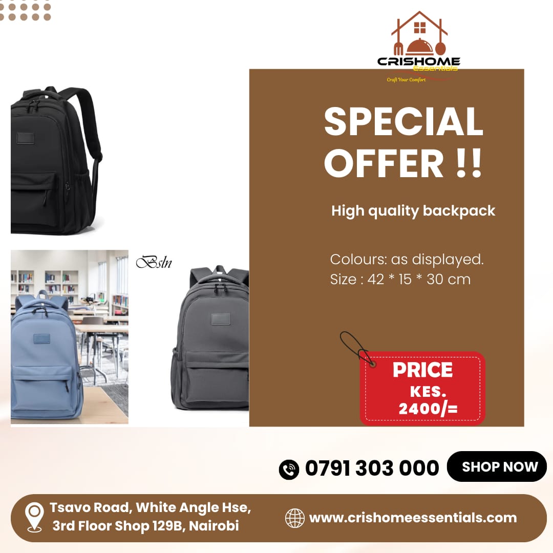 Shop High Quality Backpack at CrisHome Essentials. Spacious 42×15×30 cm design perfect for school, work or travel. Durable, stylish and practical for everyday use. Available in colours as displayed. Ideal backpack for men and women.