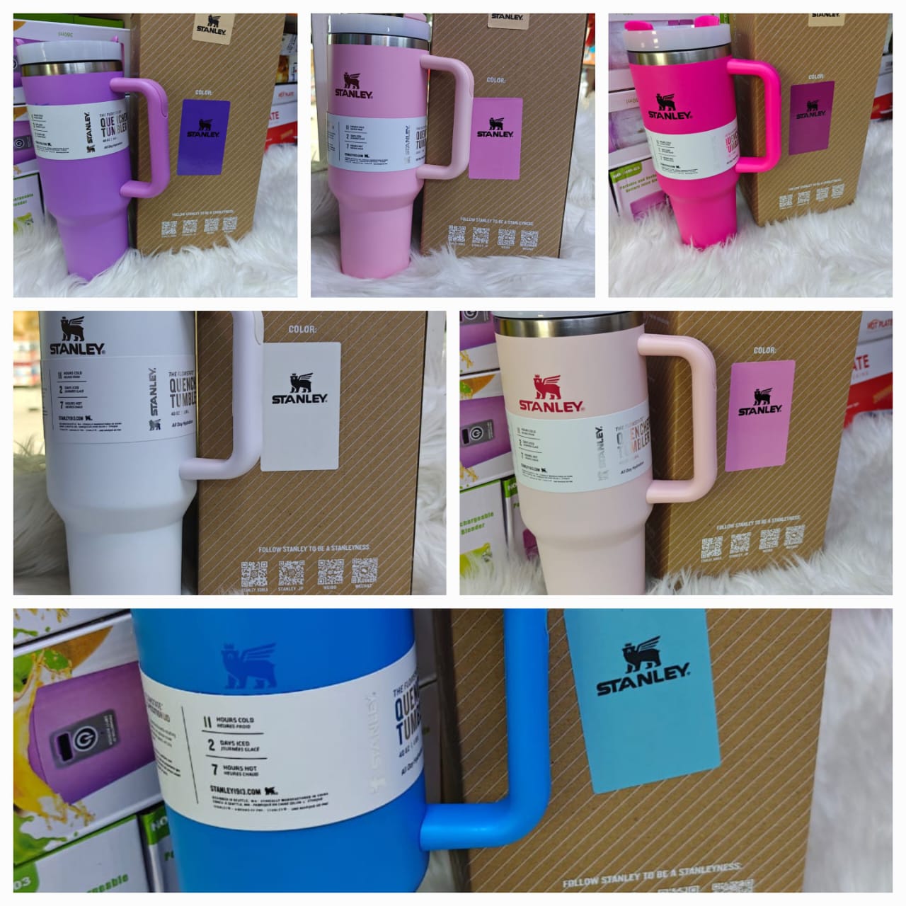 Double-wall, vacuum-insulated Stanley tumblers made of stainless steel. Keeps drinks hot or cold for hours, comes with straw, ~1.18 L capacity—ideal for daily use in Kenya.
