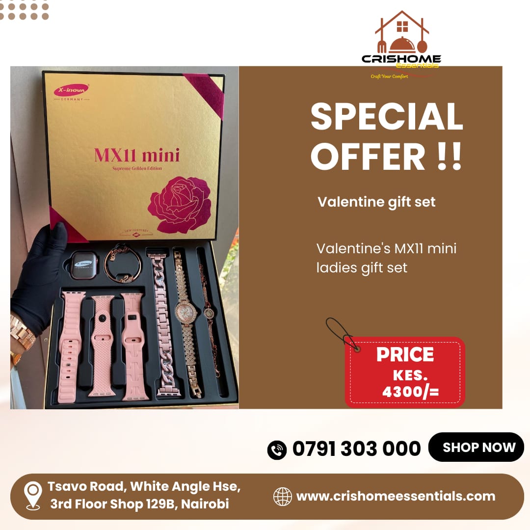 It features a high-quality smart watch designed for modern women, paired with a durable stainless steel strap for a classy finish. The set also includes 3 interchangeable rubber straps, allowing her to switch styles effortlessly to match any outfit or mood.