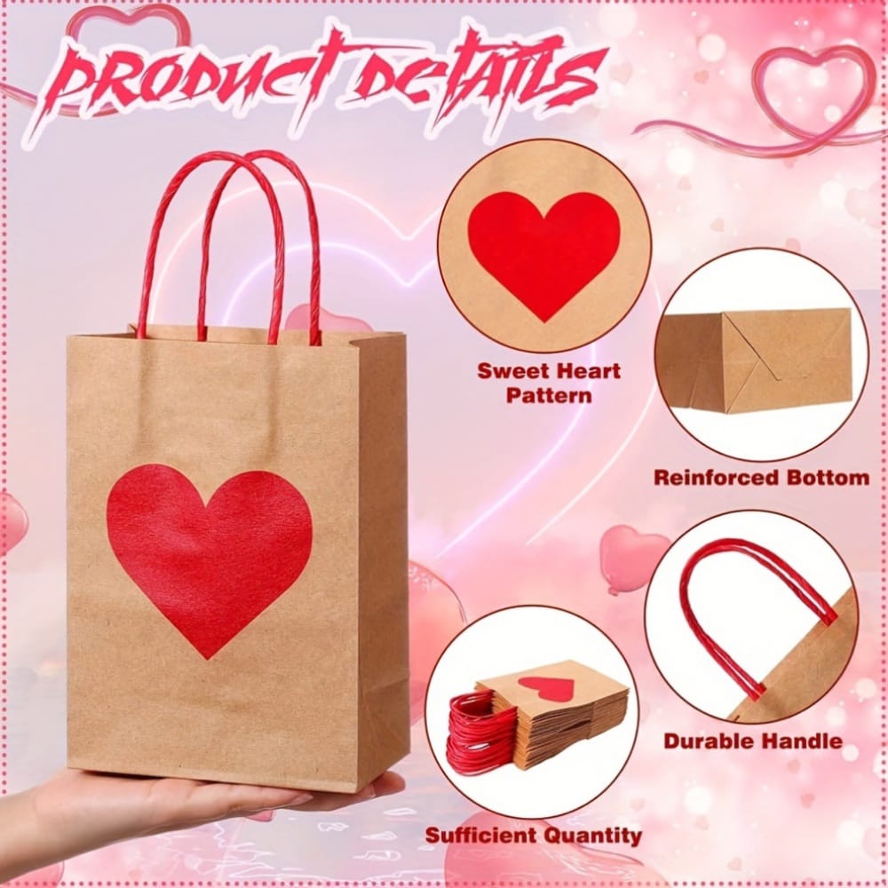 Made from high-quality kraft paper, these bags are durable, eco-friendly, and strong enough to hold chocolates, perfumes, jewelry, small accessories, and thoughtful surprises. The classic red and brown tones add a romantic and stylish touch, ensuring your gift presentation stands out.